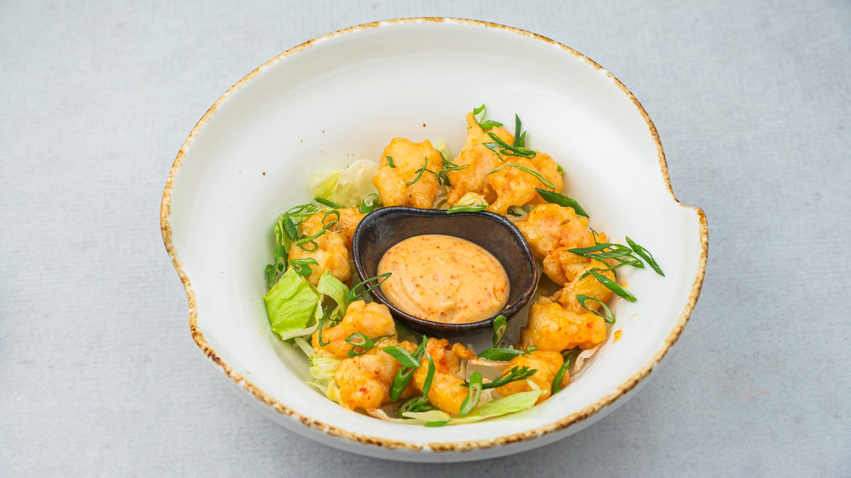 (Fritirani Black Tiger gambori na iceberg salati sa japanskim ljutim majonezom)