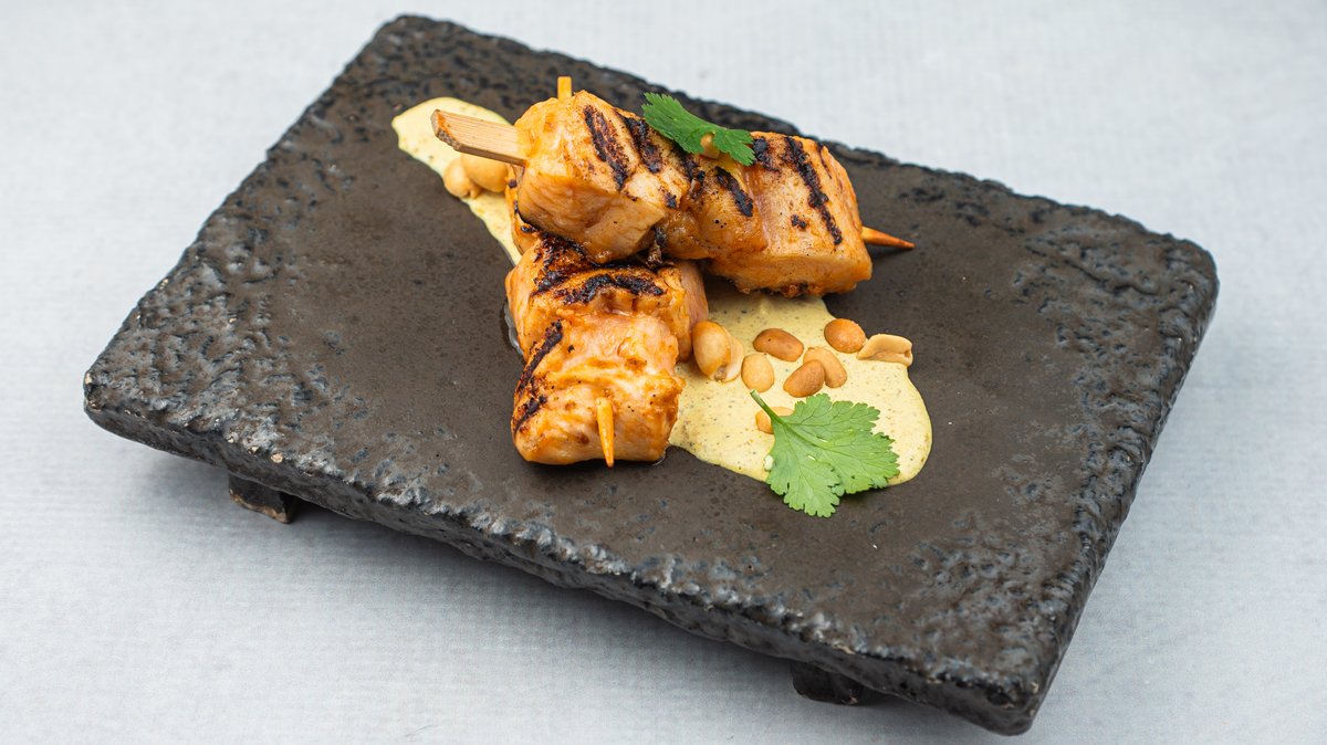 (Mariniran pileći file serviran na sosu od kikirikija)