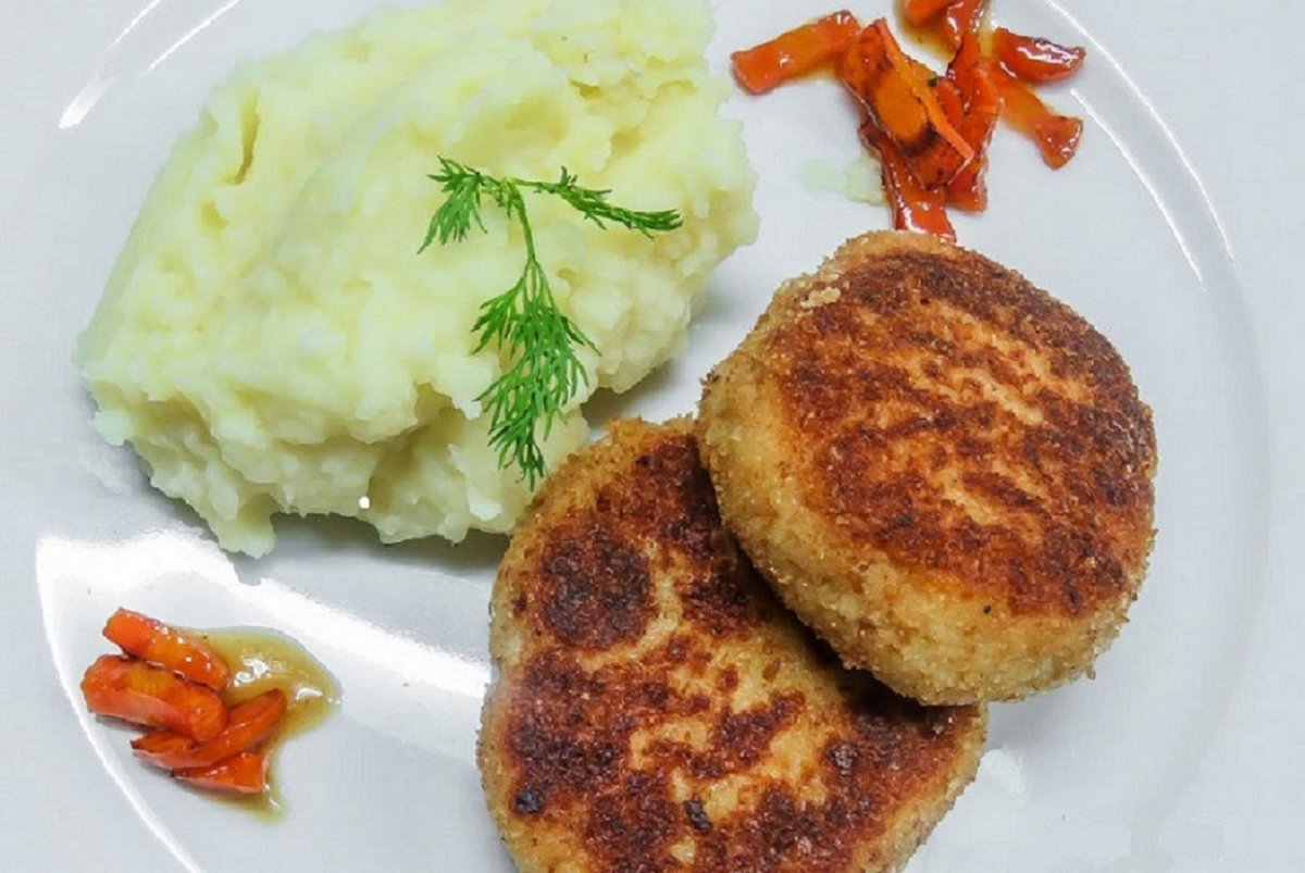 Uživajte u našim nežnim kotletima od lososa, posluženim sa pire krompirom, heljdom ili pomfritom po vašem izboru. Idealno glavno jelo.