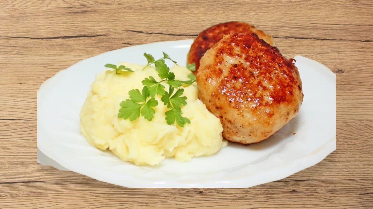 Uživajte u domaćim kotletima od tri vrste mesa, posluženim sa prilogom po izboru - pire krompirom, heljdinom ili pomfritom. Idealno glavno jelo!