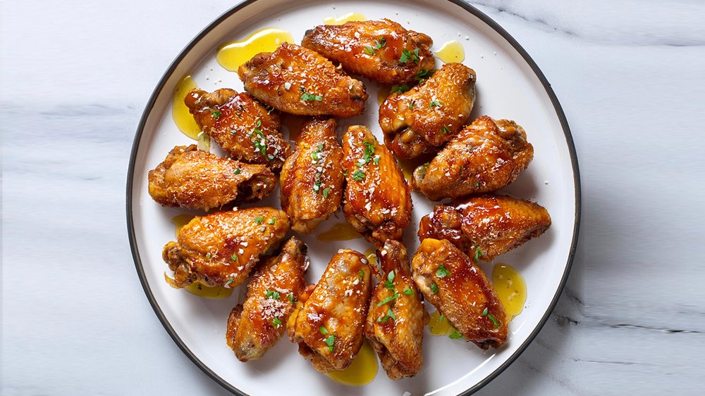 Sočna i aromatična pileća krilca, marinirana u pažljivo odabranoj kombinaciji začina, pečena na toplom vazduhu bez dodatka ulja kako bi se sačuvala njihova prirodna mekoća i bogat ukus. Nakon pečenja, krilca su obilno prelivena domaćim sosom na bazi meda, senfa, putera i belog luka, koji im daje prepoznatljivu lepljivu glazuru. Sos donosi savršenu harmoniju slatkog, pikantnog i kremastog, prozimajući svako krilce neodoljivim slojem bogatog ukusa. Kombinacija sočosti, hrskavosti i lepljive teksture čini ovo jelo pravim užitkom za sva čula.