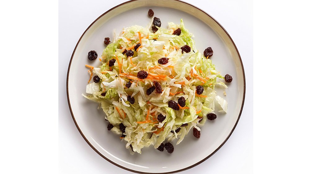 Jednostavnost nikada nije bila ukusnija! Fino seckani svezi kupus obavijen je u kremastom coleslaw prelivu koji kombinuje bogatstvo majoneza, osvezavajuću kiselost limunovog soka i sirćeta, blagu slatkoću meda ili sećera i prstohvat začina koji sve povezuju u savršenu harmoniju. Suvo groždje dodaje sofisticiranu slatku notu i teksturalni kontrast. Ova salata je istovremeno lagana i bogata, osvezavajuća i neodoljiva - savršen izbor uz svaki obrok!