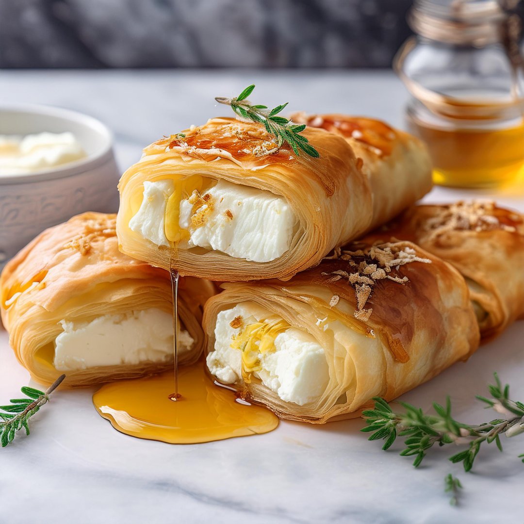 Sofisticirane domaće ručno pravljene rolnice, punjene su feta sirom i blago začinjenim notama, pripremijene su na toplom vazduhu, kako bi zadržali svoju hrskavost i nežnost. Svaka rolnica je lagano prelivena sa medom, čiji suptilni sladak miris i bogatstvo savršeno balansiraju sa slanoćom sira. Ovaj luksuzni spoj jednostavnosti i elegancije pruža vrhunski gastronomski užitak, idealan kao sofisticirani predjelo ili dodatak obroku.