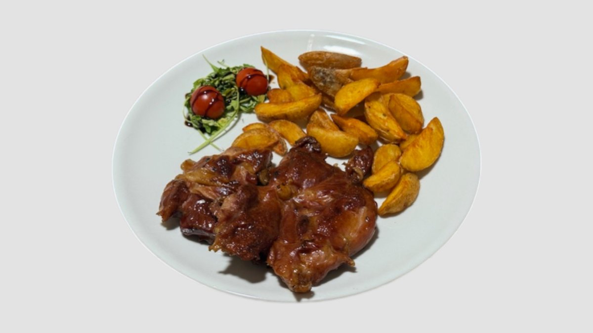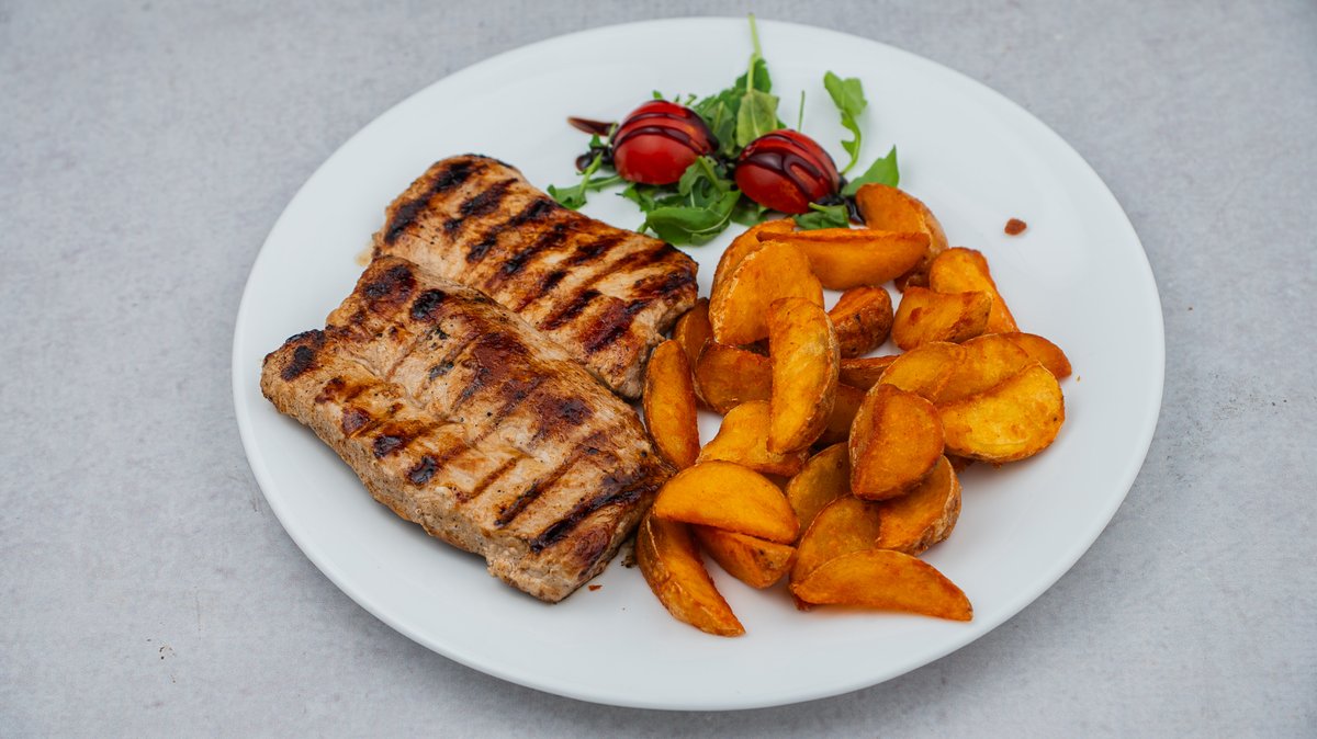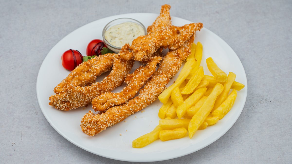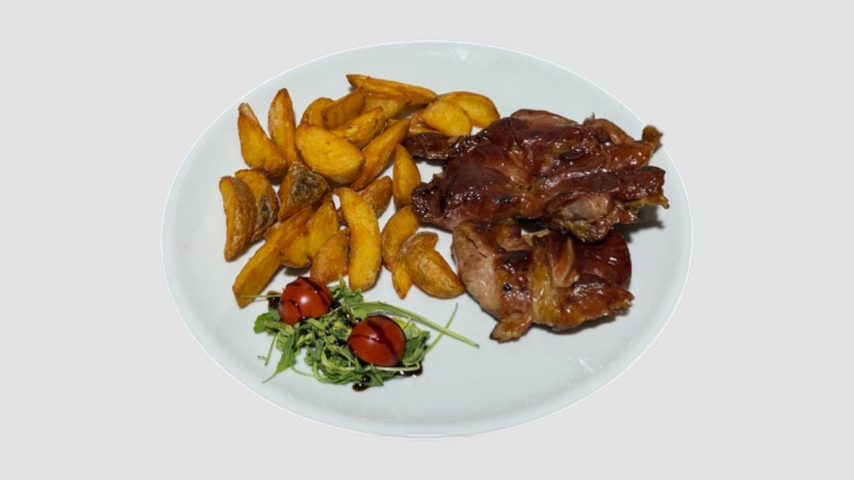 Pileći file, pomfrit, rukola, čeri