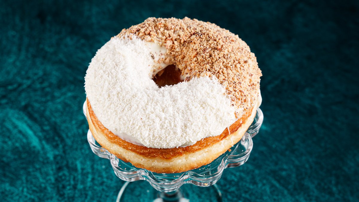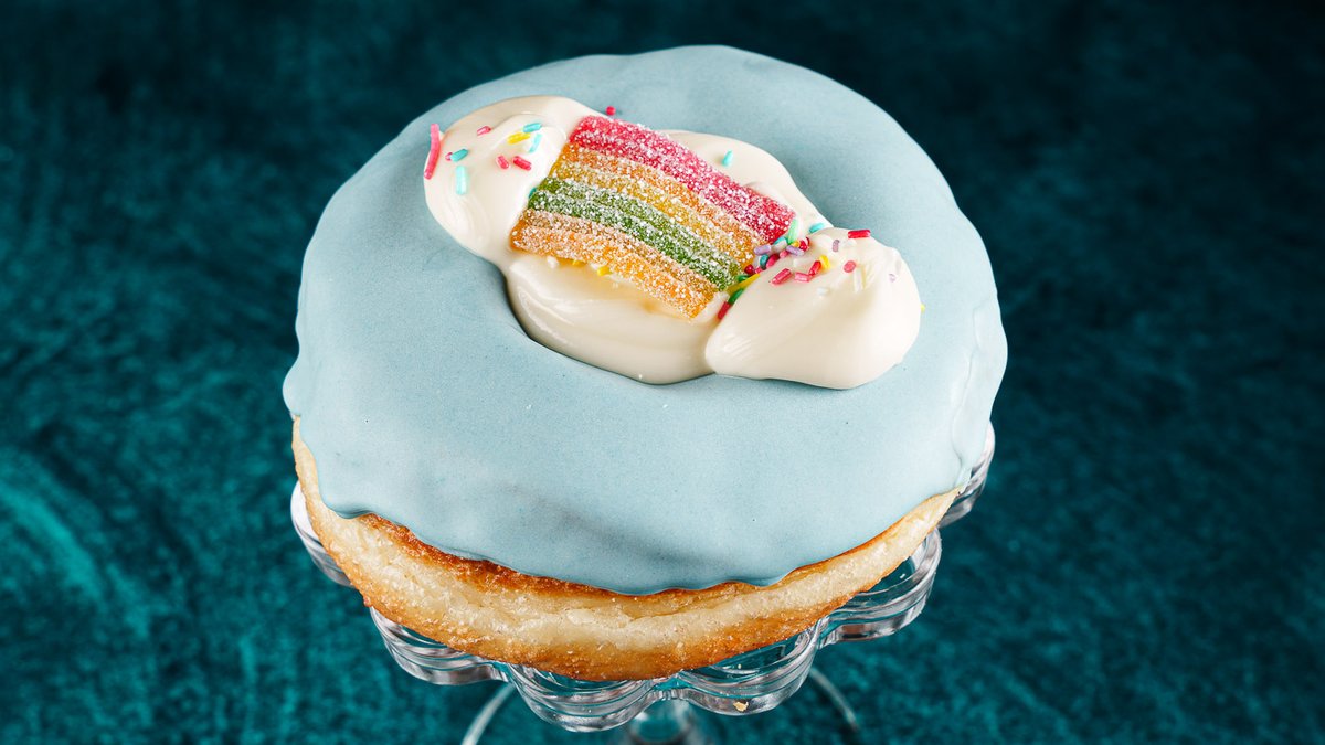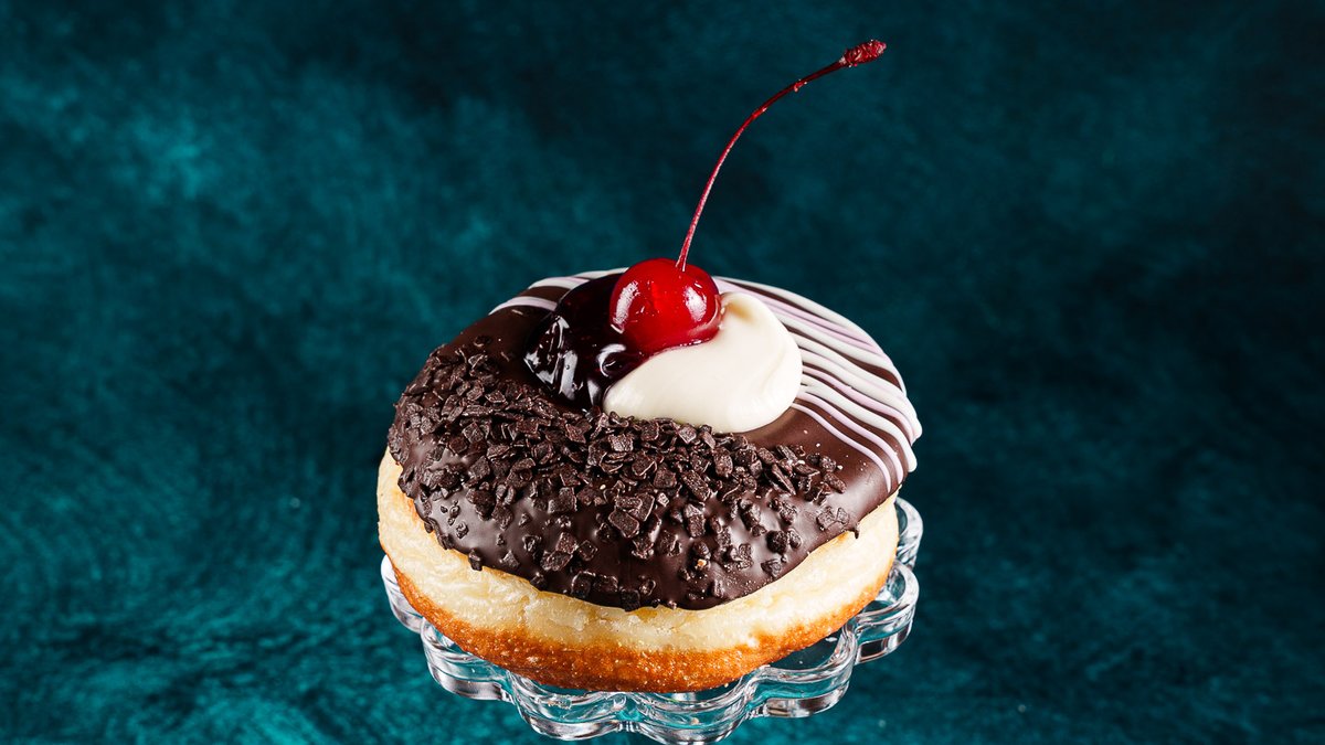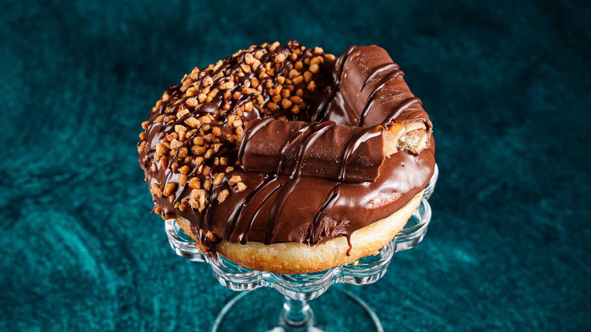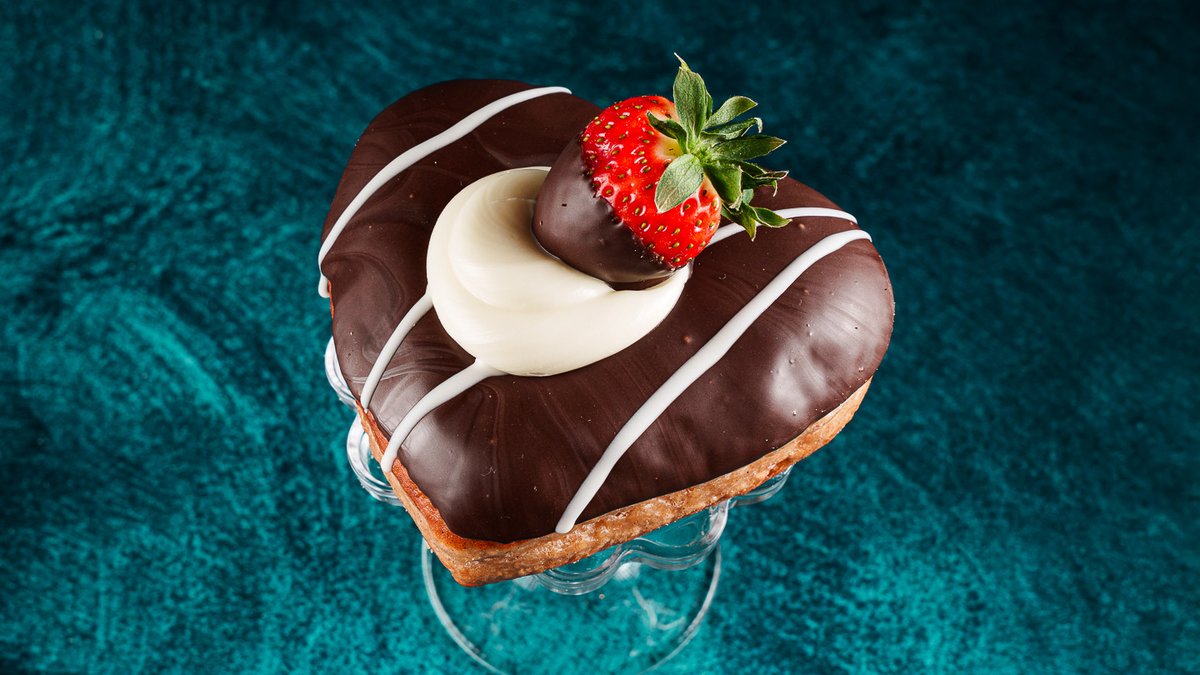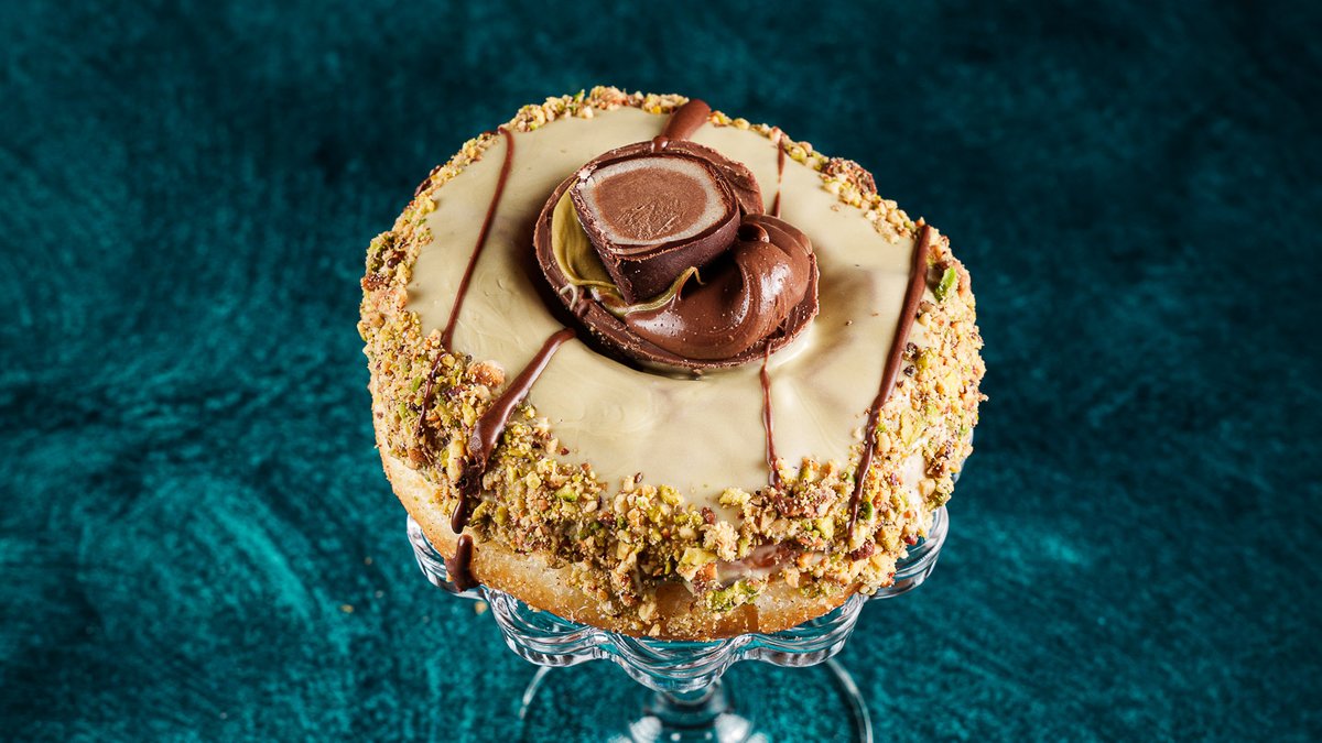Mlečna čokolada, vanila fil, jagoda fil, malina, nana, bele čokoladne mrvice, smesa za krofne