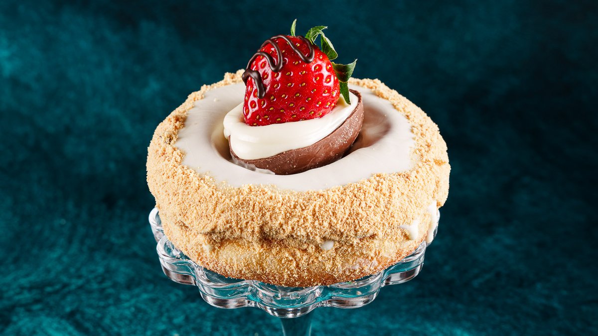 Sveža jagoda, čoko jaje, beli kinder fil, plazma, bela čokolada