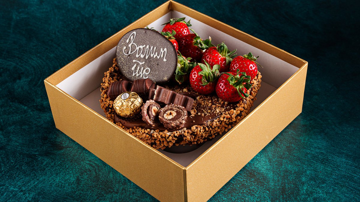 Čokoladno srce sa kremastim punjenjem i čokoladicama i porukom po želji (2-3 reči), 1kg