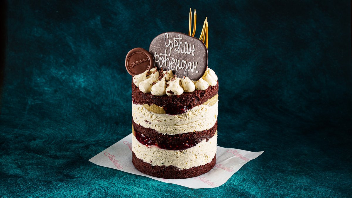 Mini torta sa čokoladnim filom i čokoladnom korom, sa svećicama i porukom po želji (2-3 reči)