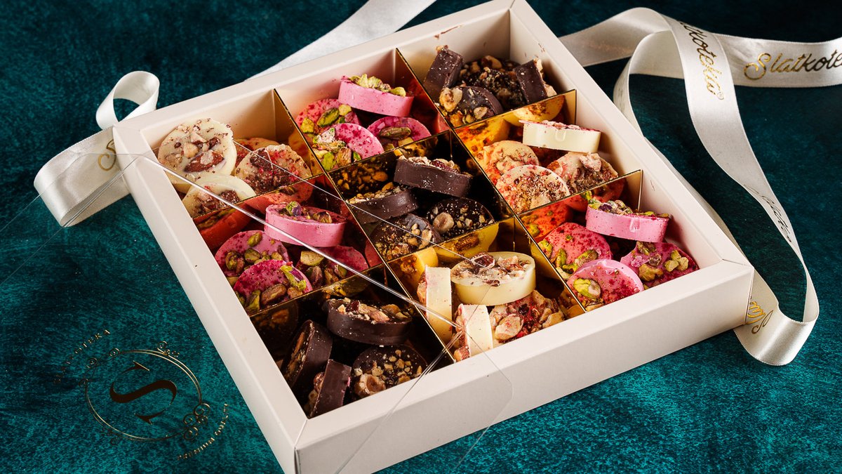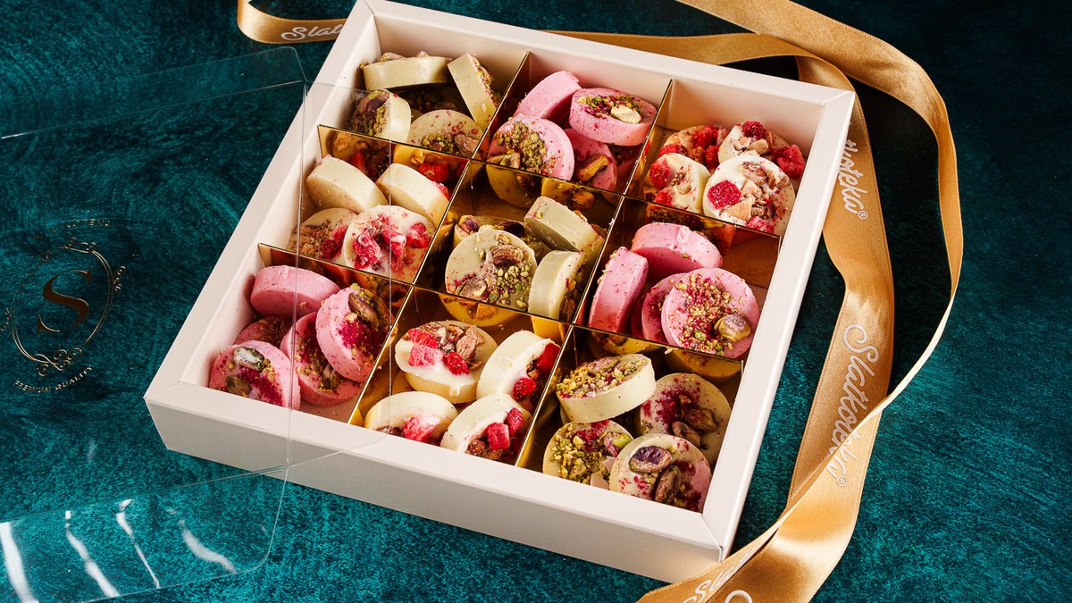 16 mini pralina u premium pakovanju (pistać, malina, badem pasta, nugat)