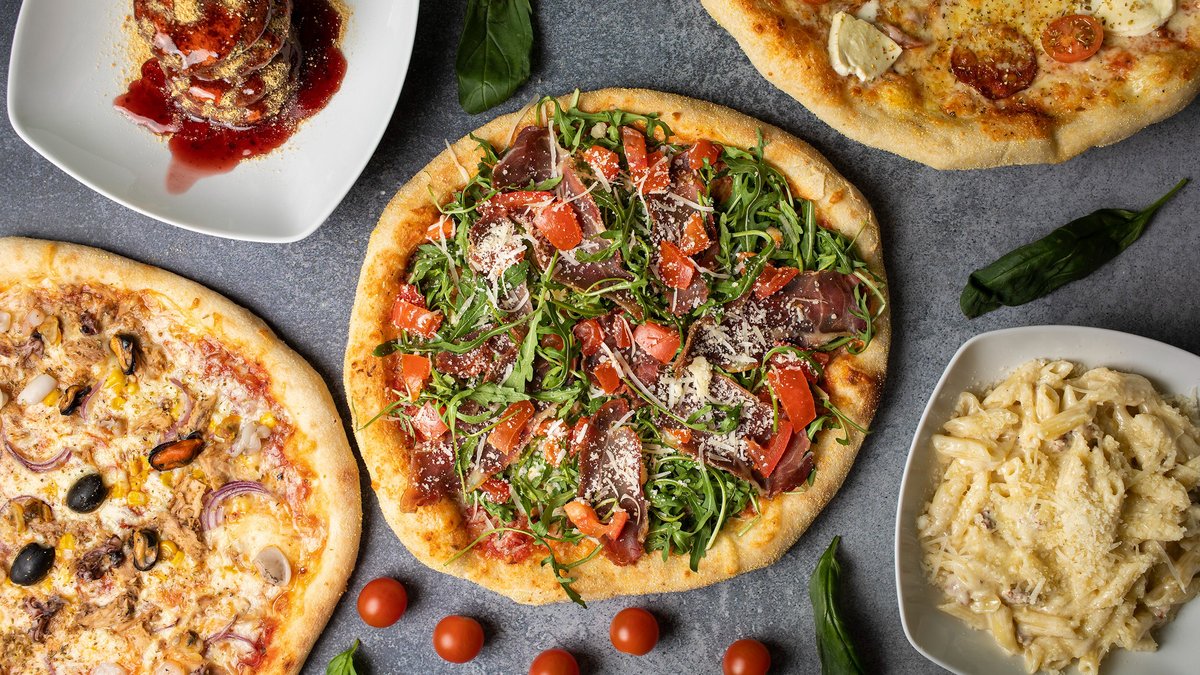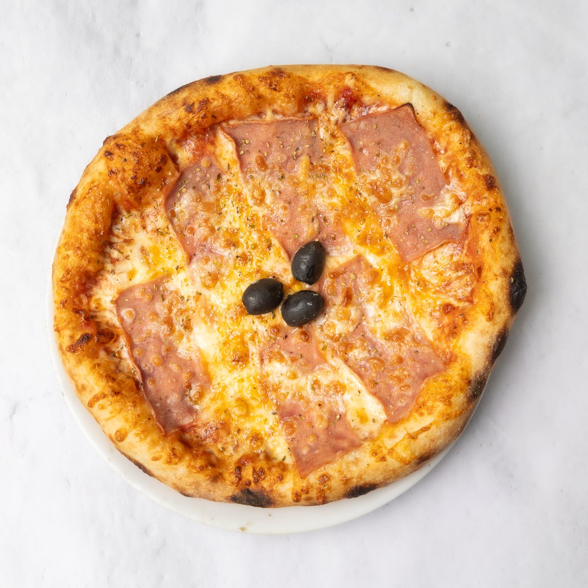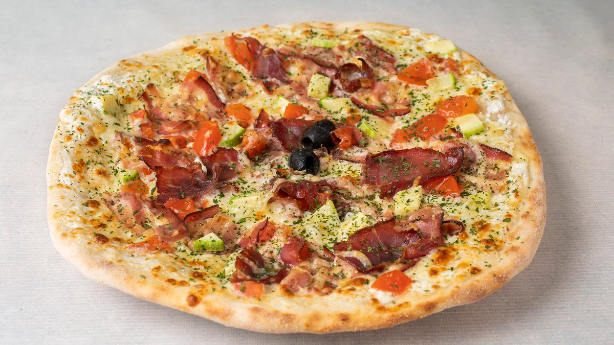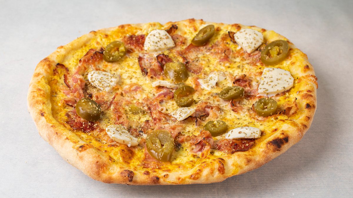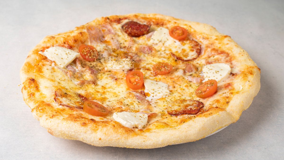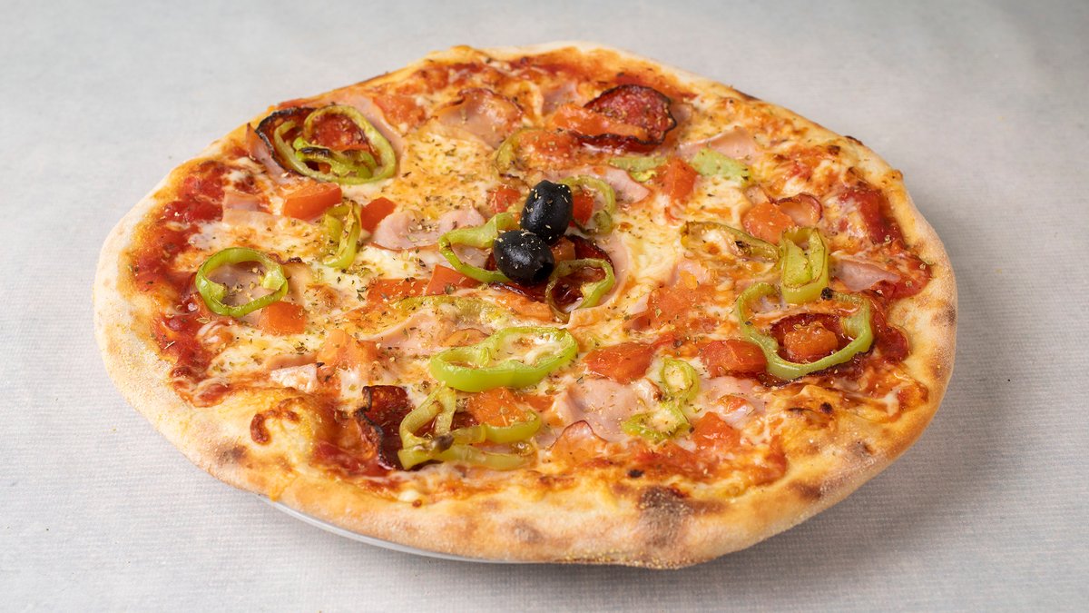 Pelat, kačkavalj, praška šunka, pečurke, masline, origano