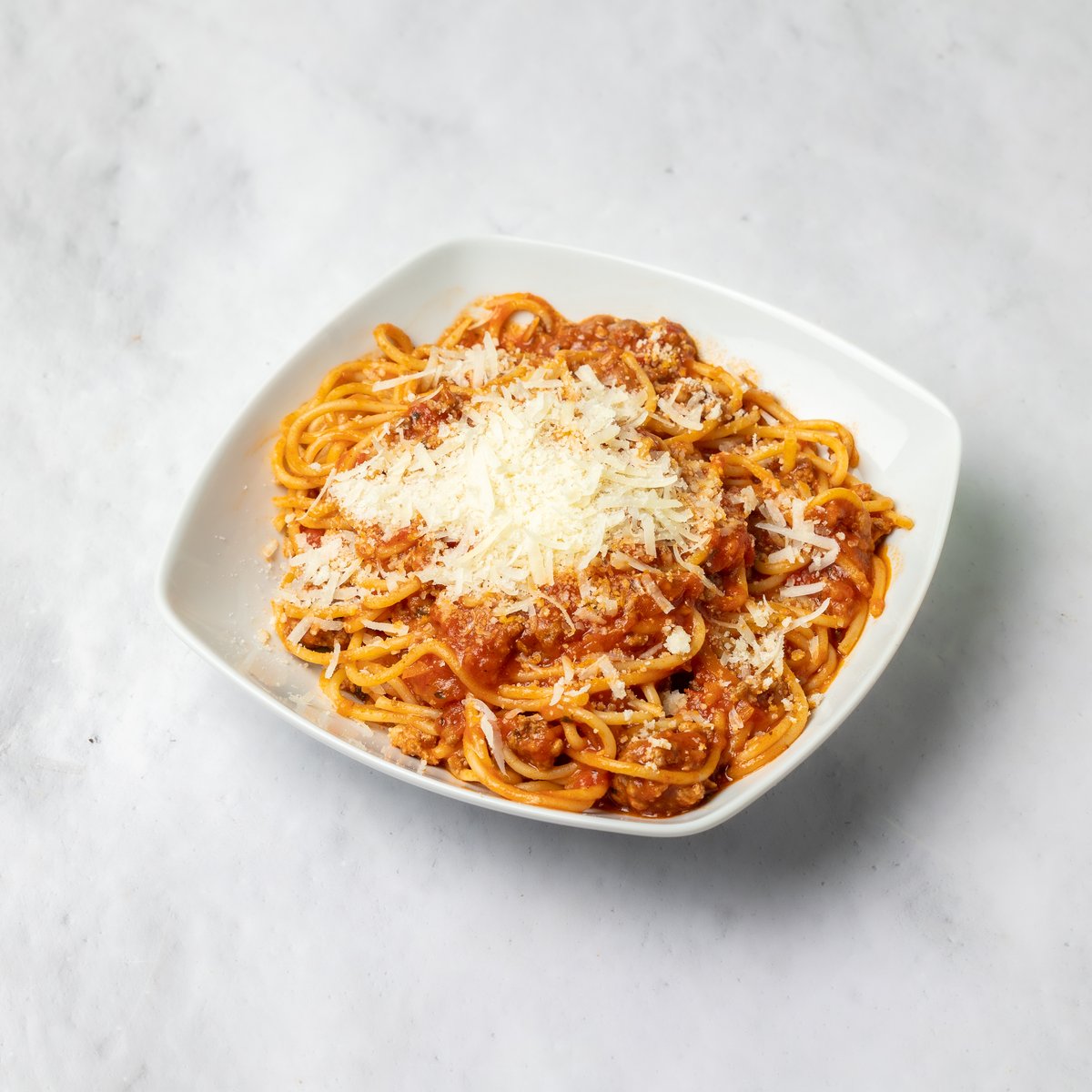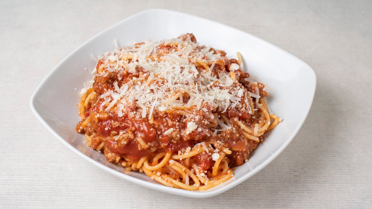 Maslinovo ulje, crni luk, beli luk u ulju, so, biber, napoli sos, bolonjez sos, svež paradajz, testenina, parmezan