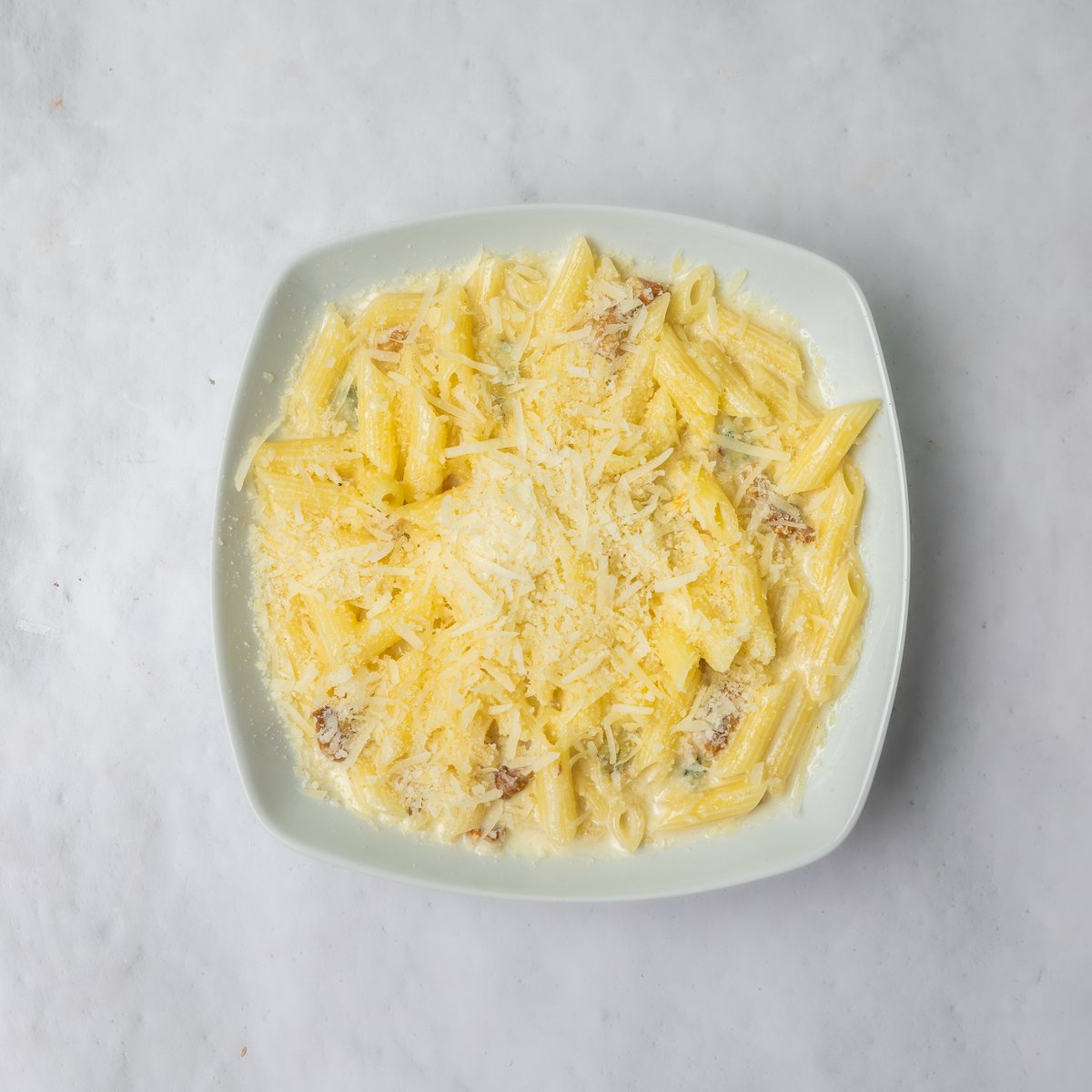 Maslinovo ulje, orasi, neutralna pavlaka, so, biber, dimljeni sir, mocarela, gorgonzola, parmezan, testenina