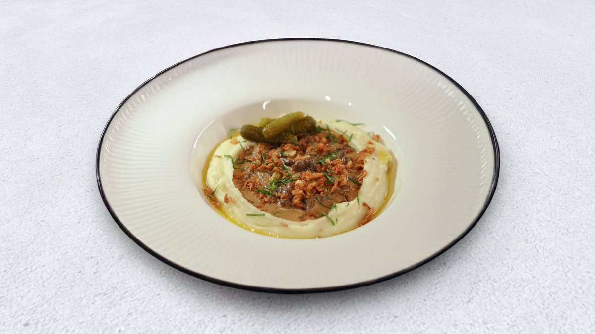 Nežna ovsena kaša sa paradajz pastom, čeri paradajzom i hrskavim slaninom, začinjena aromatičnim začinima: ruzmarin, kumin i kurkuma. Kcal: 540