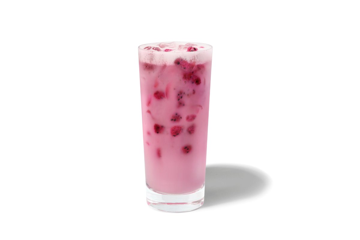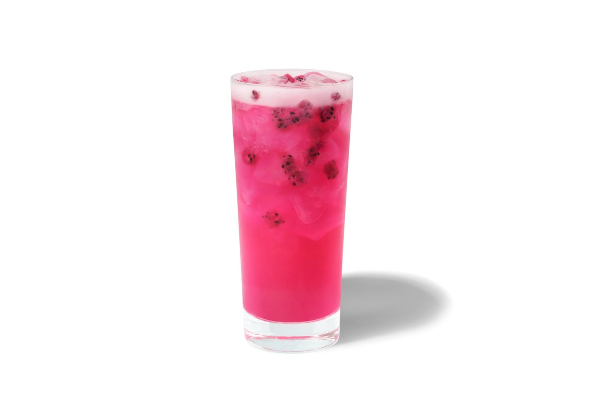 Refresha inspirisan tropskim ukusima slatkog manga i komadićima zmajevog voća sa napitkom od kokosa, šejkovano sa ledom