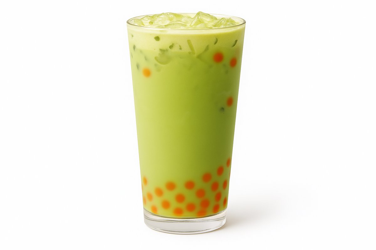 Iced Vanila Matcha Latte with Melon flavour pearls