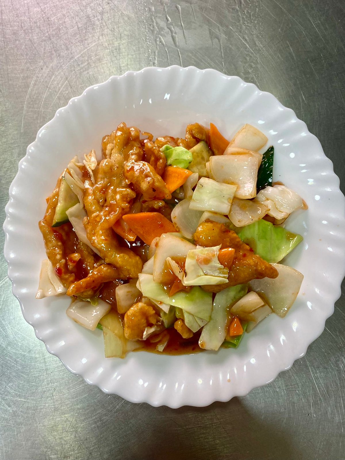 22.Piletina sa slatkim sosom, piletina sa mešanim povrćem