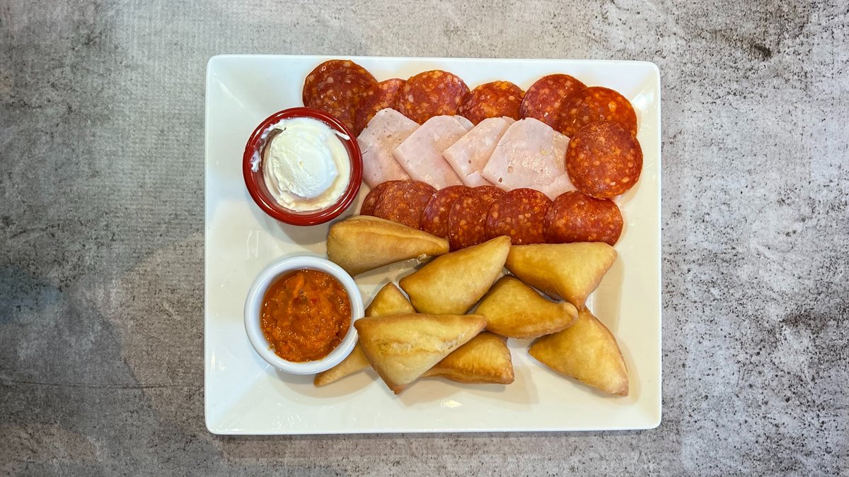 Pelat, mozarella, šunka, paradajz, feta sir, paprika, šampinjoni, masline