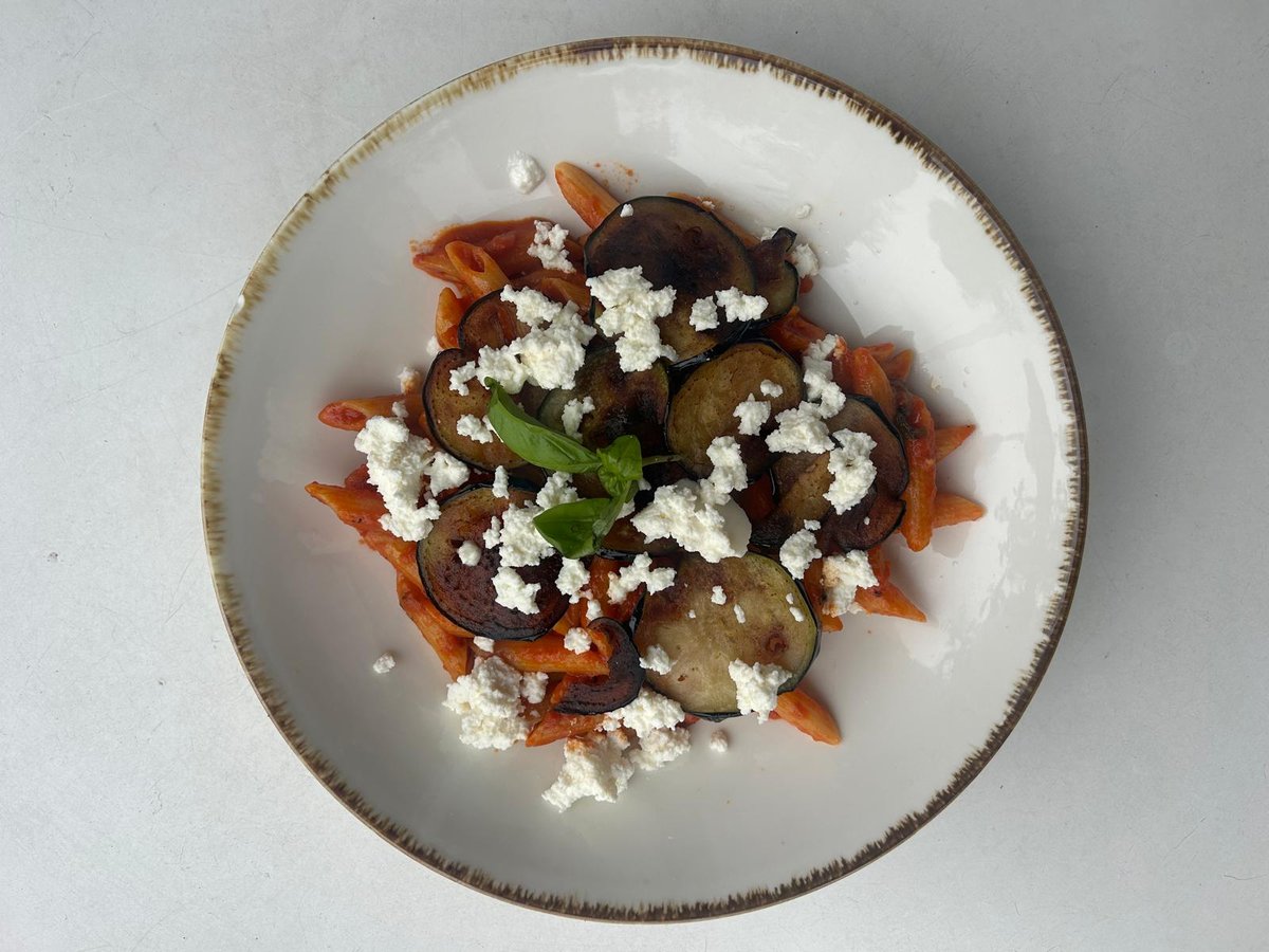 testenina, patlidžan, rikota, cherry paradajz, beli luk, bosiljak, maslinovo ulje