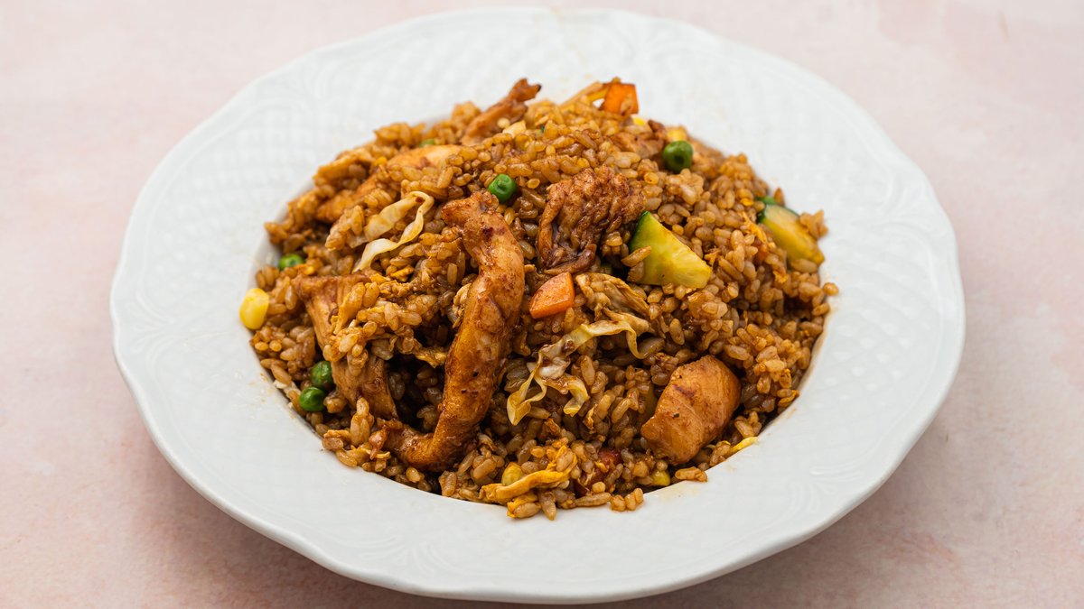 Piletina, kupus, zelena paprika, crvena paprika, luk, čili ulje, pirinač