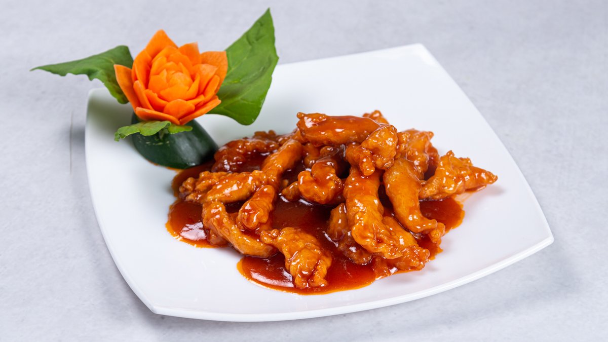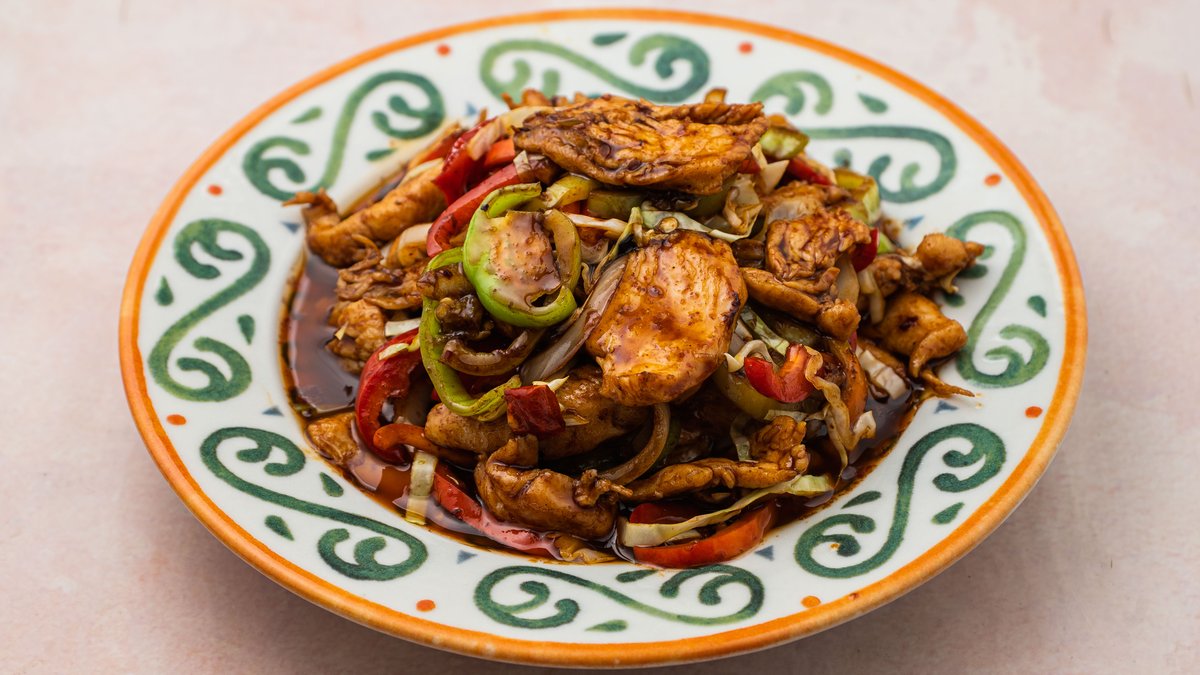 Hrskava piletina, soja sos, zelena paprika, čili, pirinač