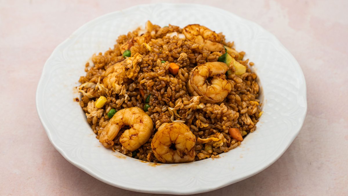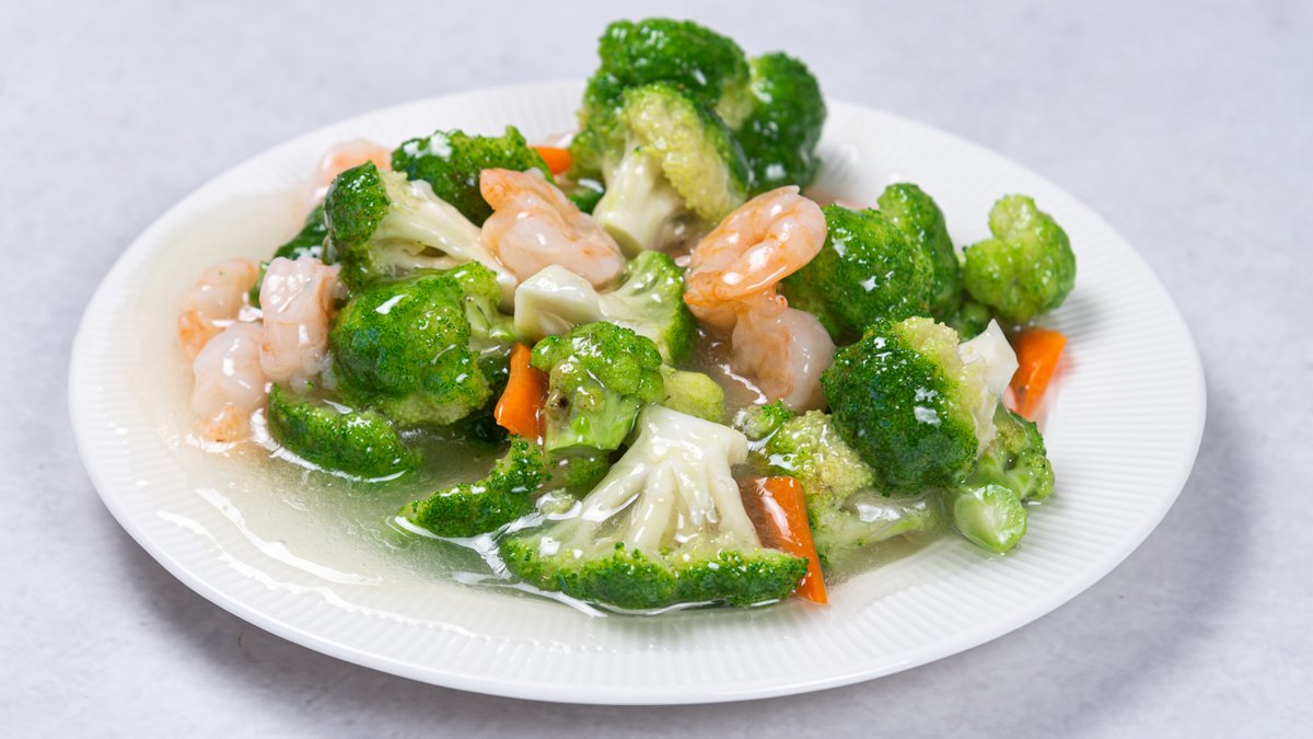 Brokoli, škampi, šargarepa, beli luk, pirinač