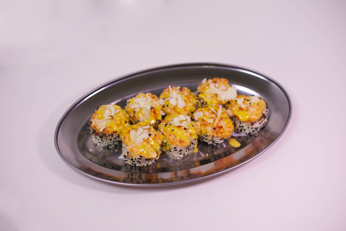 Pirinač, nori, mango, sir, tamago, badem, mango sos, shrimp. 8 kom