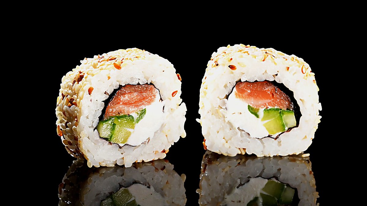 Losos, filadelfija sir, krastavac, beli susam, 8 komada