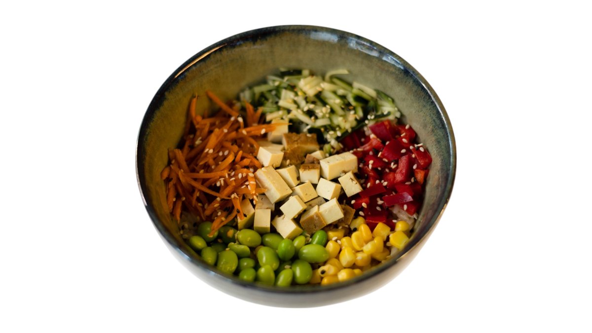Pirinac, avokado, paprika, sargarepa, krastavac, kukuruz, edamame, dimljeni tofu