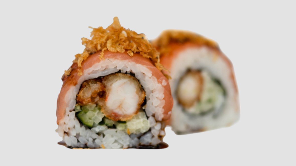 Skampi, japanzki majonez, losos, krastavac, teriyaki sos, hrskavi luk, 8kom