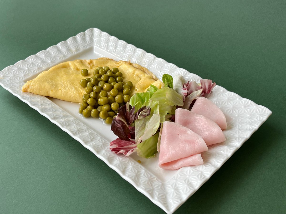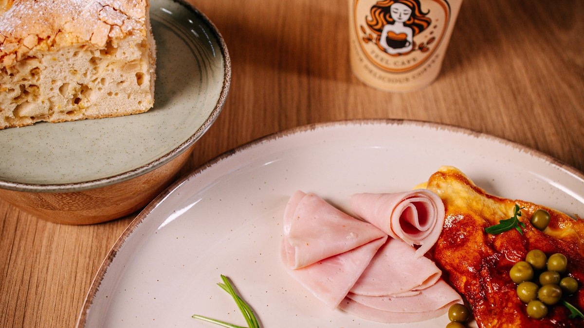 Doručak: Omlette sa graškom + Cappuccino M+ Sharlotka / 2 Oreški