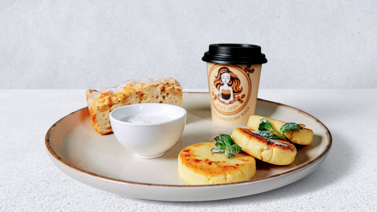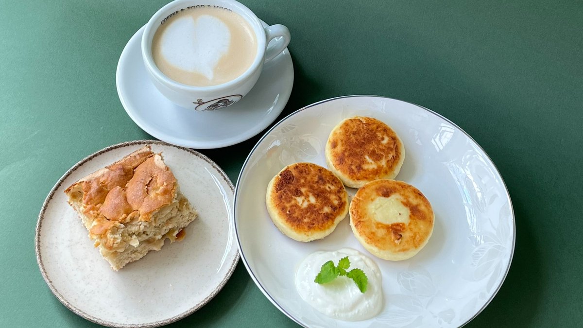 Doručak: Syrniki + Cappuccino M+ Sharlotka / 2 Oreški