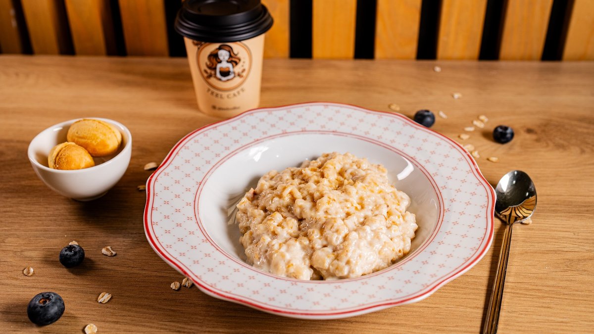 Doručak: Ovsena kaša + Cappuccino M+ Sharlotka / 2 Oreški
