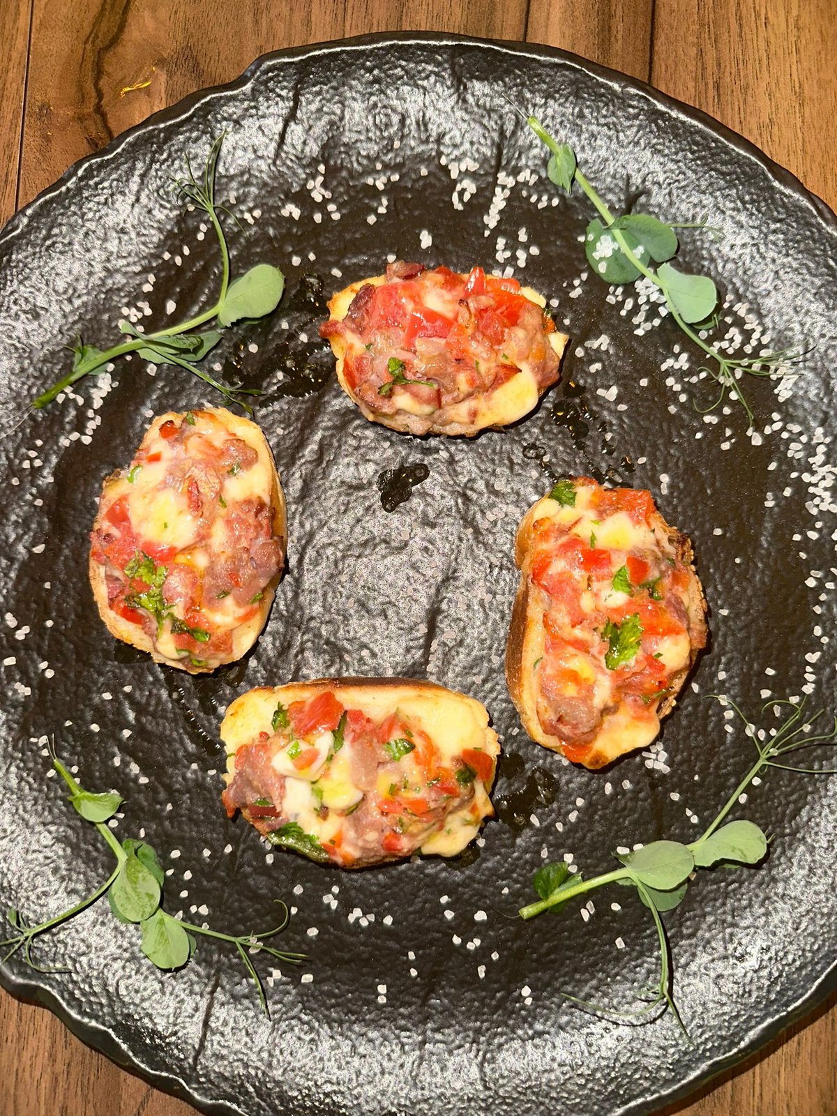 Hrskavi brusketi sa mocarelom, govedjom pršutom, paradajzom i maslinovim uljem