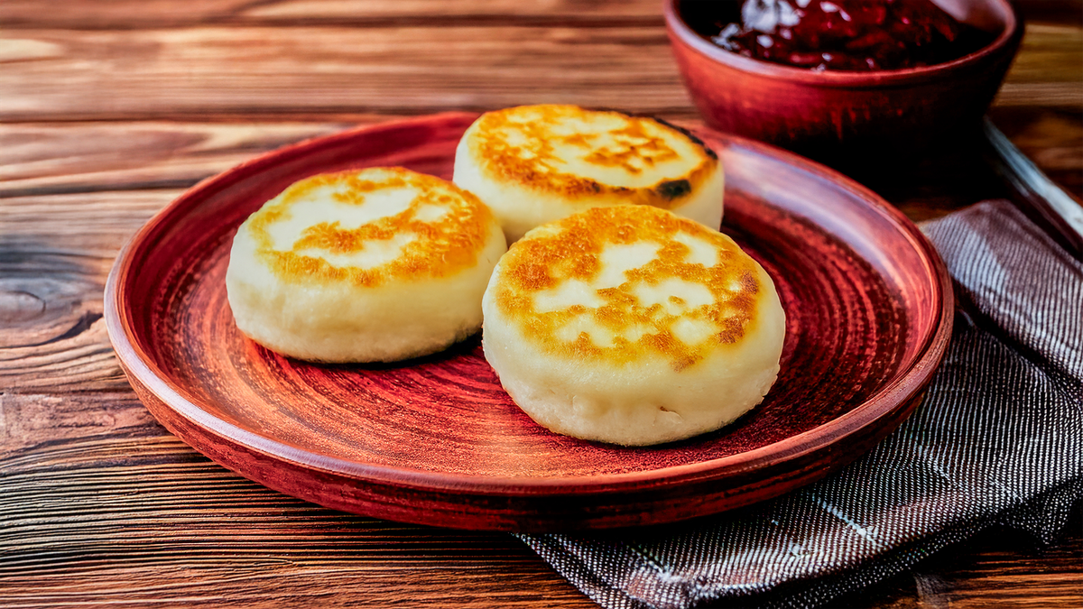 Nezni sirniki sa slatkim džemom – omiljeni doručak iz detinjstva. / Нежно приготовленные сырники с вареньем — любимый завтрак из детства.