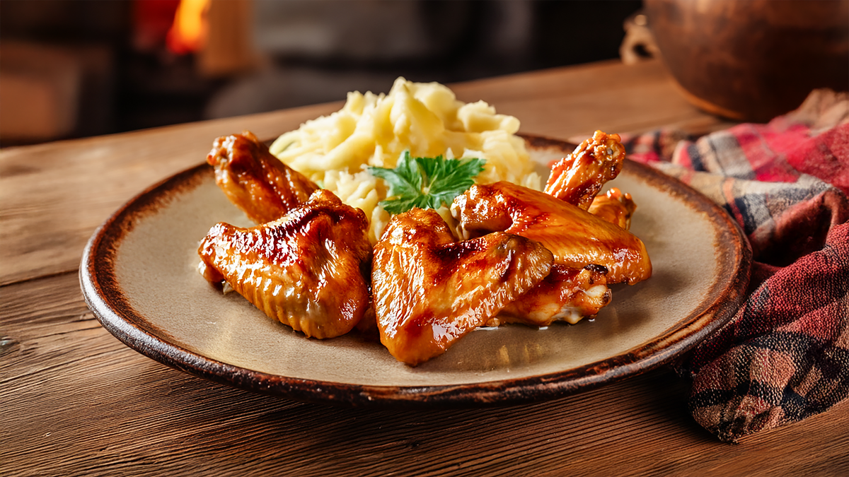 Sočna, zapečena pileća krilca u aromatičnom marinatu – savršen spoj ukusa i zadovoljstva. / Сочные, запечённые куриные крылышки в ароматном маринаде — идеальное сочетание вкуса и удовольствия.