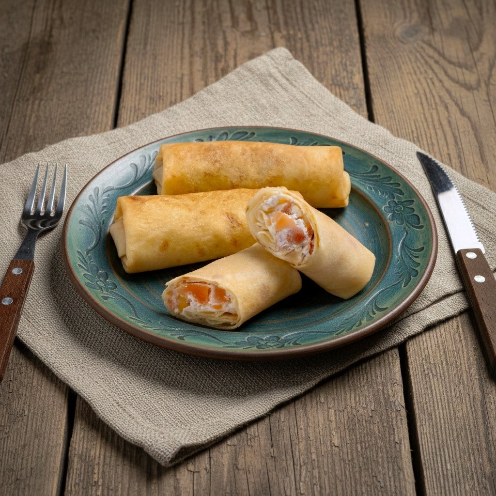 Nežno slatke palačinke sa bogatim nadevom od maka — ukus detinjstva u svakom zalogaju. / Нежные сладкие блины с насыщенной маковой начинкой — вкус детства в каждом кусочке.