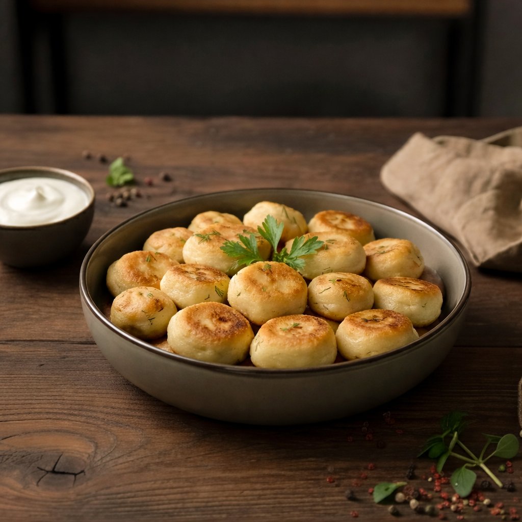 Topli sirniki sa zgusnutim mlekom – slatki užitak u svakom zalogaju. / Тёплые сырники со сгущёнкой — сладкое наслаждение в каждом кусочке.
