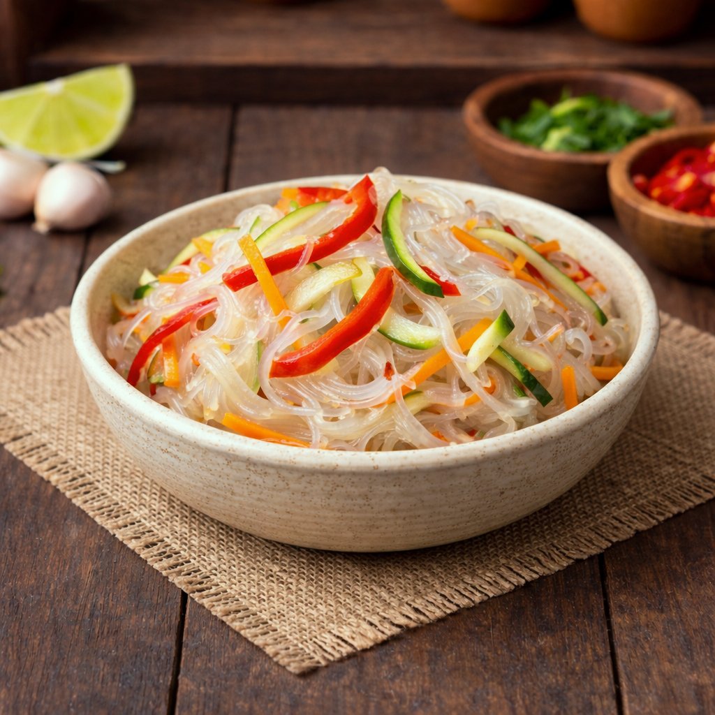 Stakleni rezanci funčoza sa povrćem u aromatičnom sosu — Стеклянная лапша фунчоза с овощами в ароматном соусе