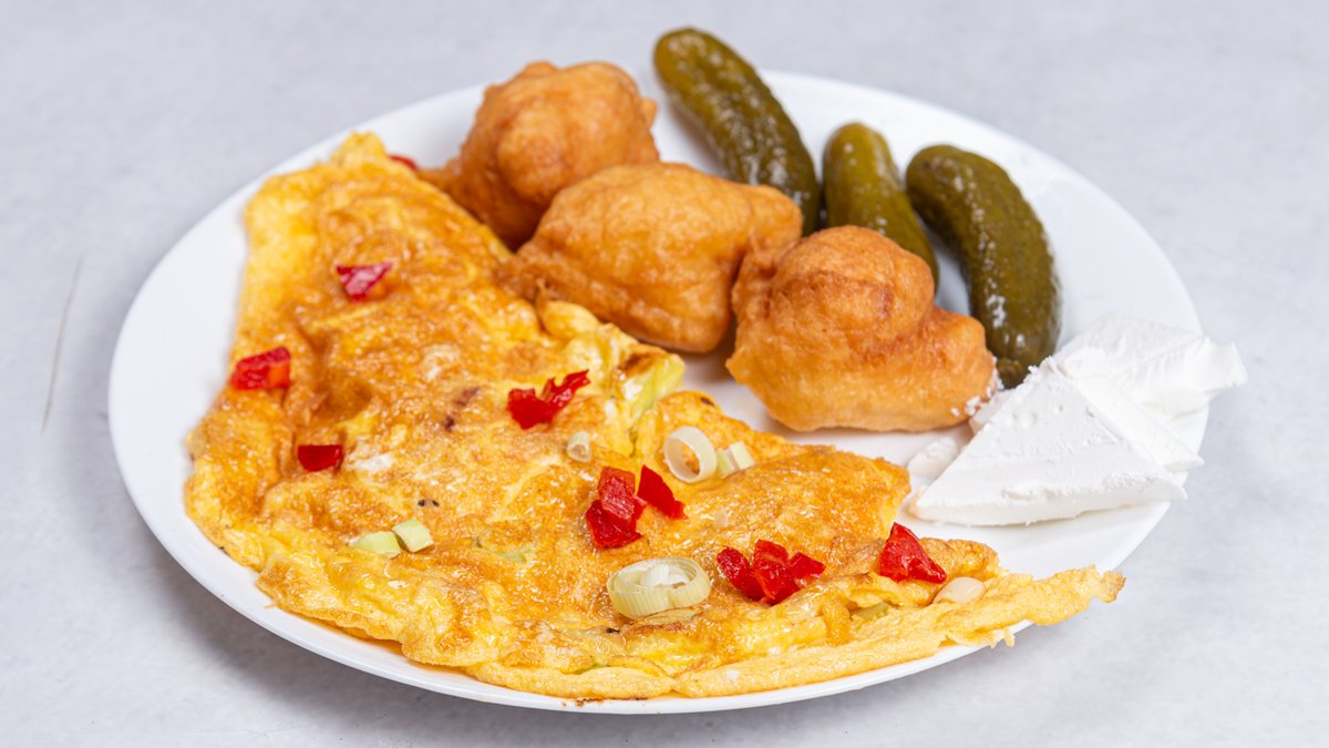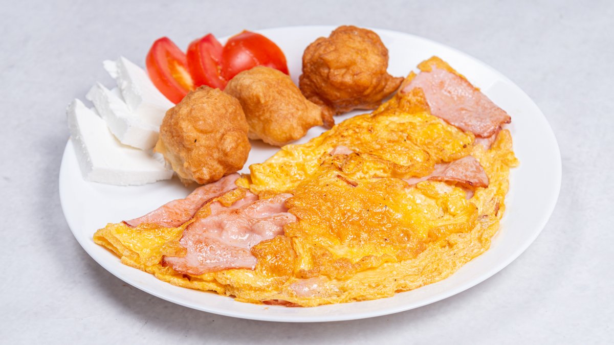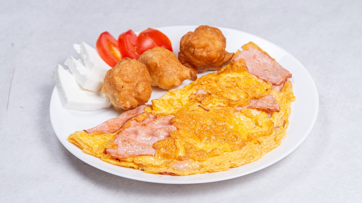 3 jaja, šunka, uštipci, paradajz, sir zlatarski