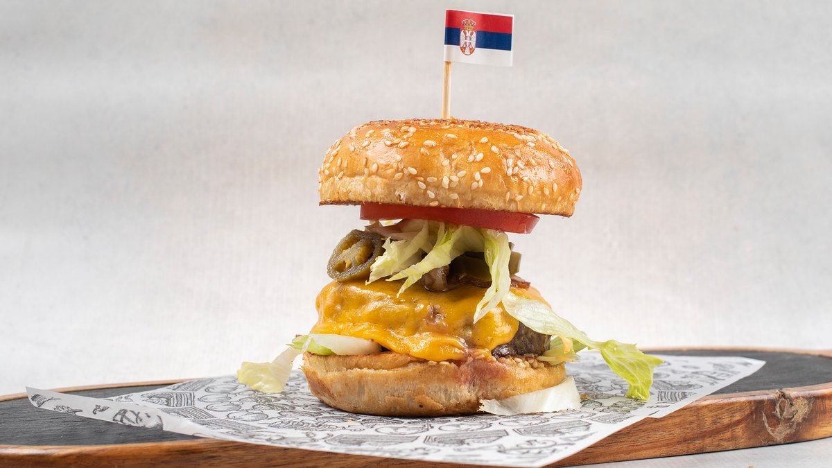 200g Black Angus meso, cheder sir, slanina, jalapeno, burger sos, iceberg