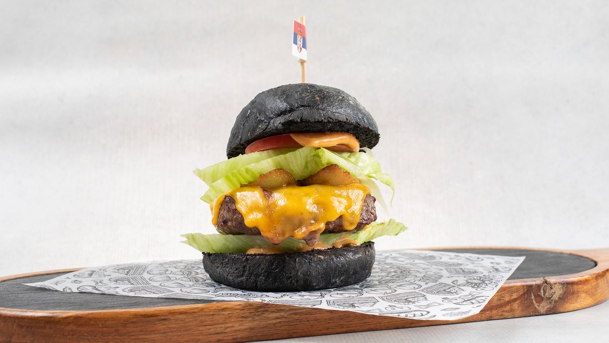 Black Angus meso, cheder sir, crni tartufi, burger sos, iceberg, crna zemicka
