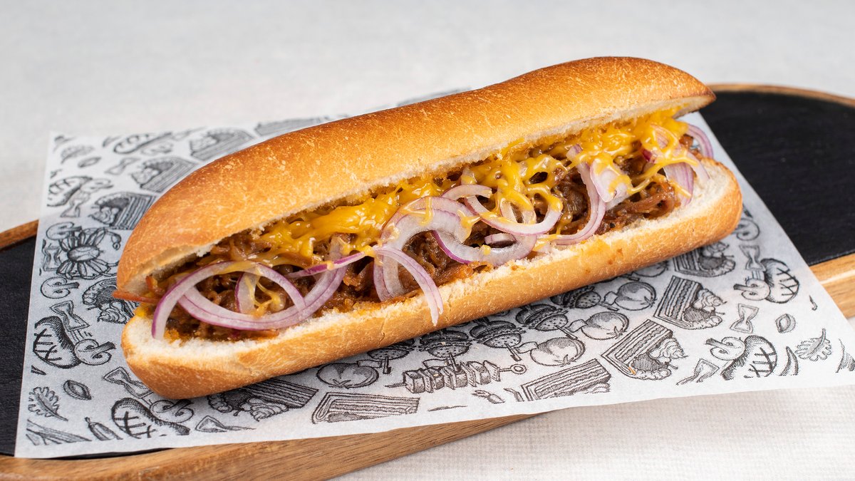 150g Drpani Black Angus spreman 5 sati ispod saca, marinirani luk, rukola, bbq sos, senf