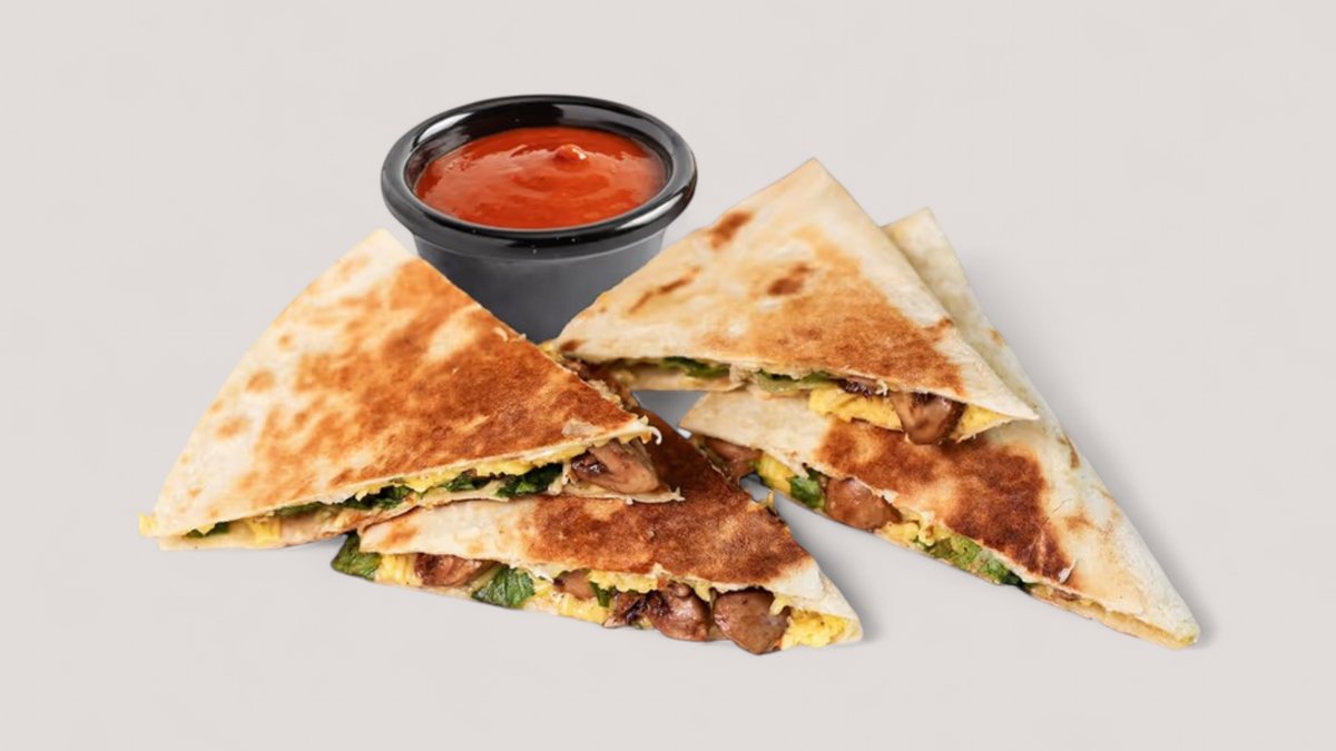 Tortilla, marinirane pečurke, biljni sir, zelena salata