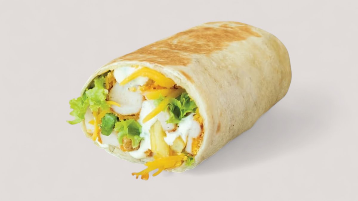 Standard tortilla, 3kom chicken crispy, Pomfrit, Cheddar sir, Mix zelena iceberg, Cezar dressing