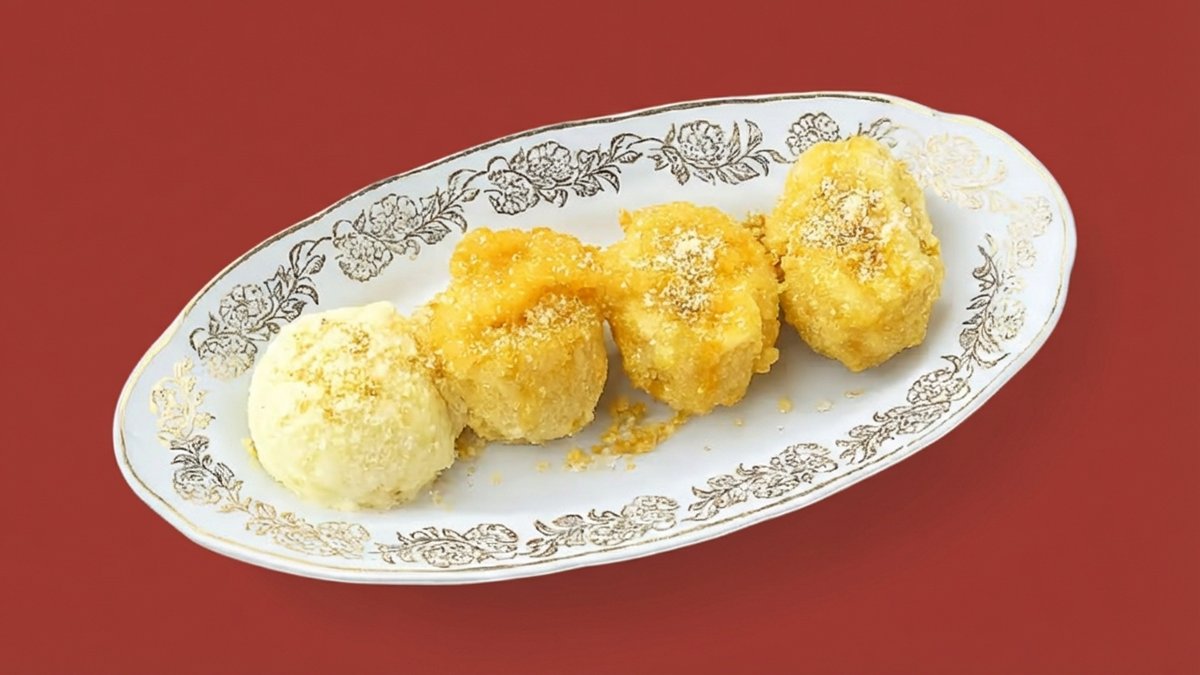 A true menu legend since 2023 — warm banana tempura paired with creamy gelato.