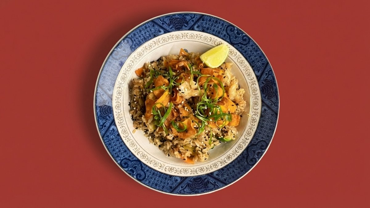 Fragrant fried rice with seafood, cooked in a classic Asian style.