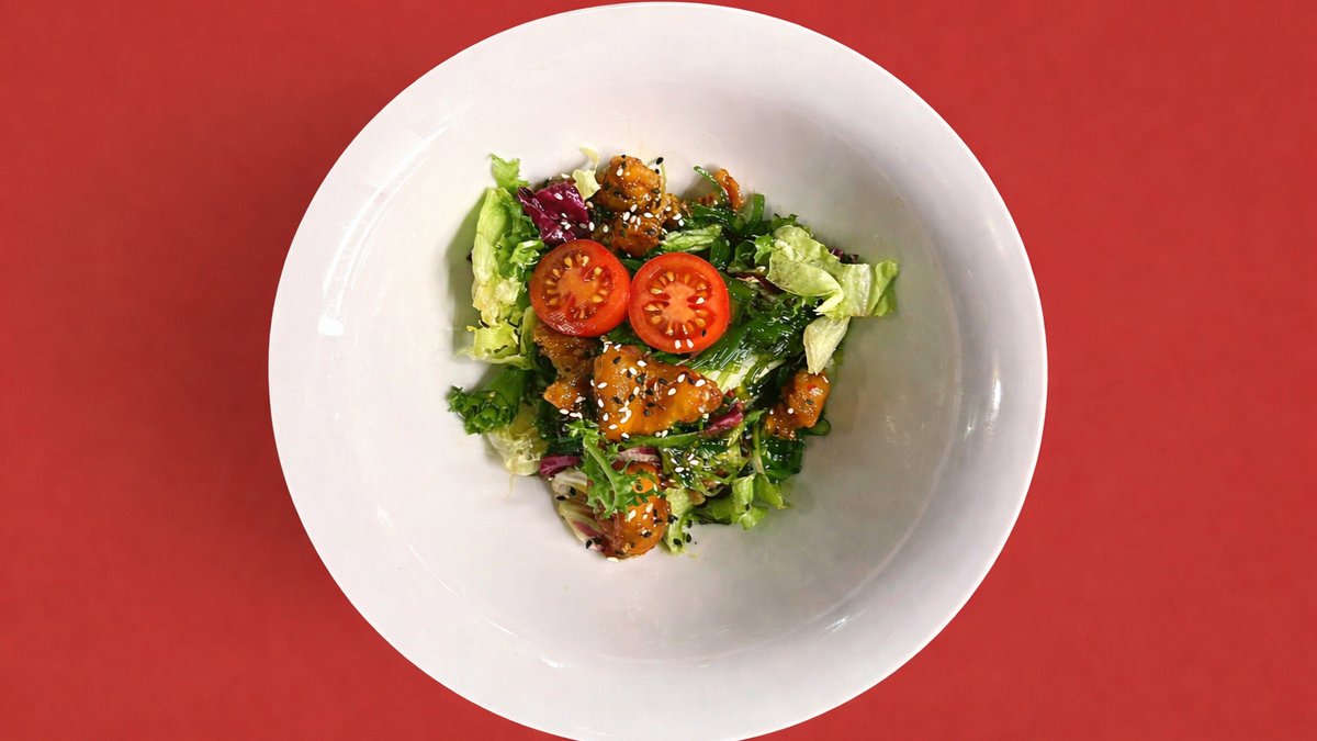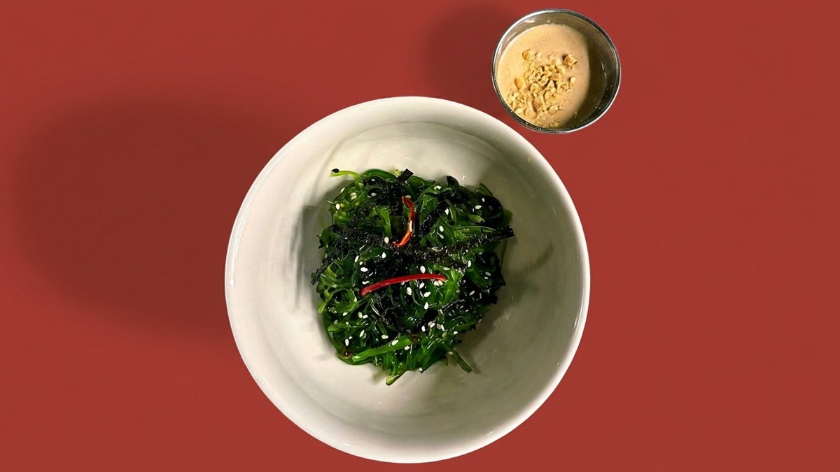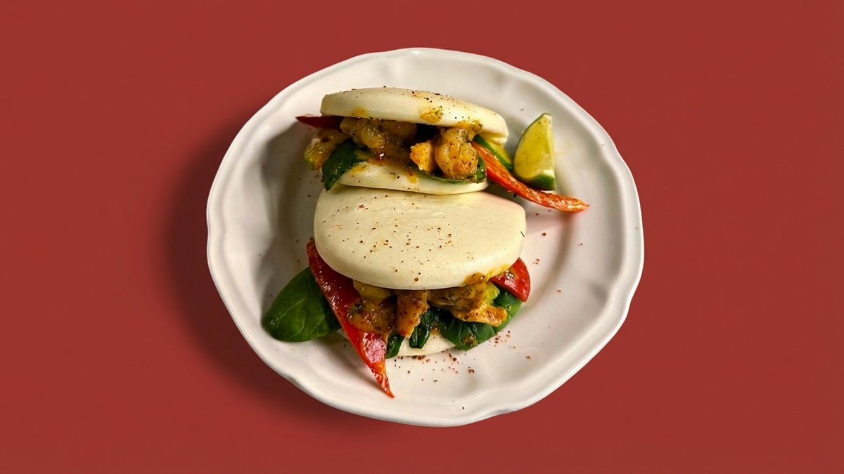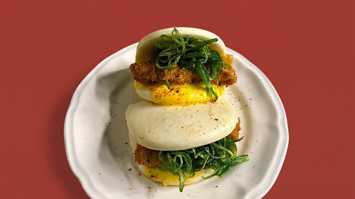 Fluffy bao bun with tender chicken and refreshing chuka seaweed.