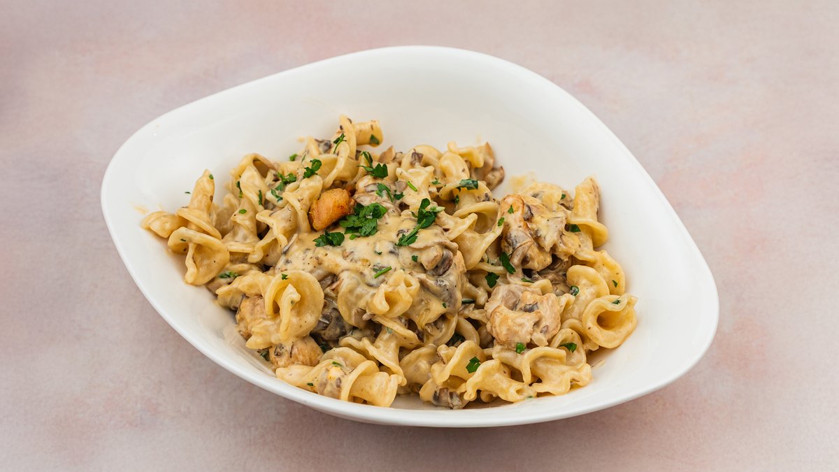 Pileća prsa 70gr, šampinjoni, maslinovo ulje, crni luk, pavlaka, žumance, peršun, italijanski tvrdi sir, so i biber.