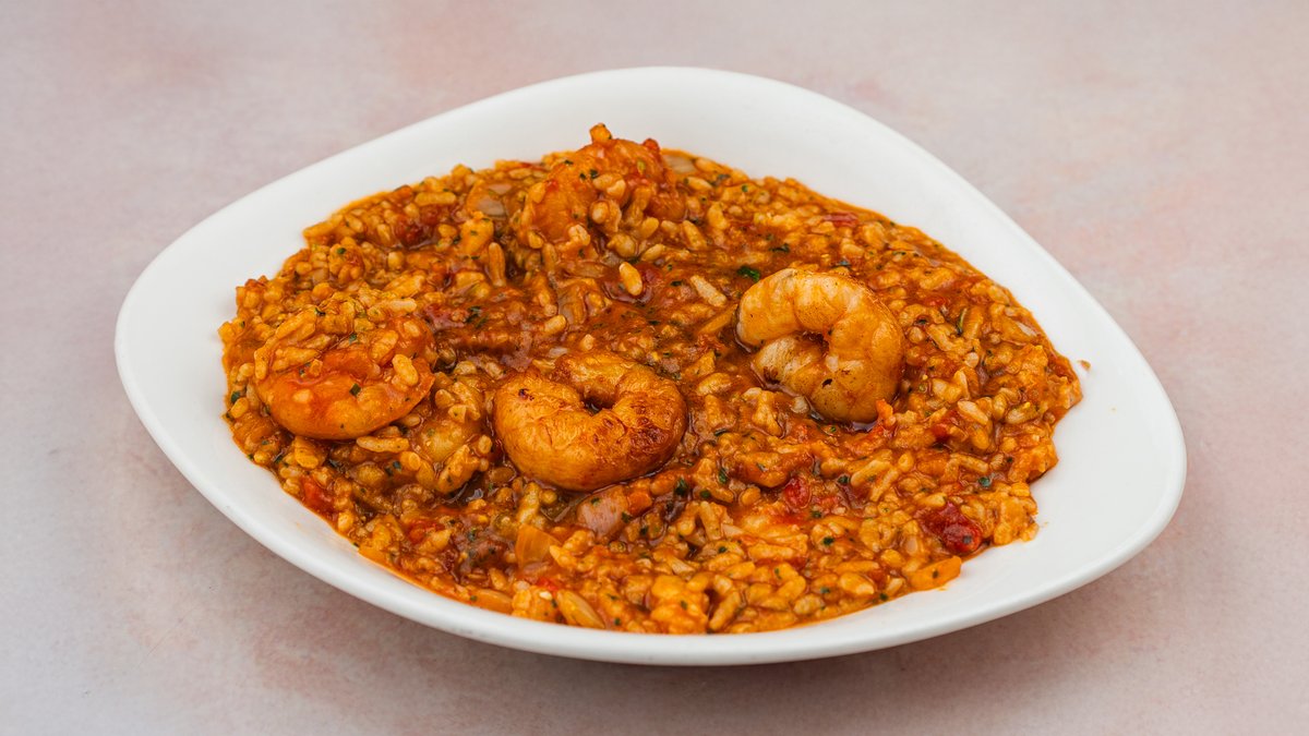 Škampi 70g, Arborio pirinač, Vapiano paradajz sos, Vapiano bosiljak pesto, belo vino, povrćni bujon, maslinovo ulje, crni luk, italijanski tvrdi sir, so i biber.