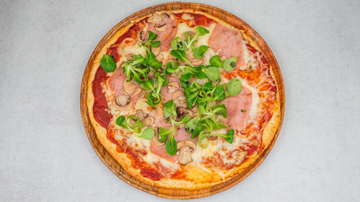 pelat, šunka, kačkavalj, pečurke, masline